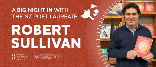 A Big Night In is the evening event in the very special literary celebrations for the NZ Poet Laureate in Hawke's Bay. Robert will bring the handcrafted tokotoko he receives from the official ceremony at Matahiwi Marae earlier in the day, his favourite poems and extraordinary friends to this celebration of talent.