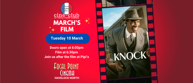 The film for March is Dr Knock (2017), PG - 113 minutes, Comedy, French with English subtitles