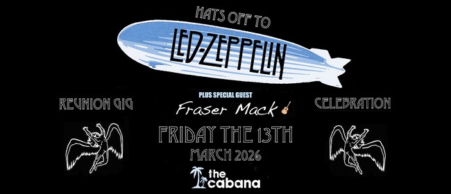 It’s Celebration Day on Friday 13 March… Hats Off To Led Zeppelin band is playing a reunion gig! An evening of legendary Led Zeppelin classics, performed live on stage! Super-talented guitarist / singer / songwriter, Fraser Mack will be opening the show with some acoustic gems.