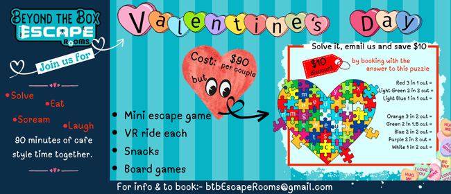 Beyond the Box Escape Rooms is hosting a special "Solve, Scream, Eat, & Laugh" event. For $90 per couple, you’ll get a unique 90-minute date night experience
